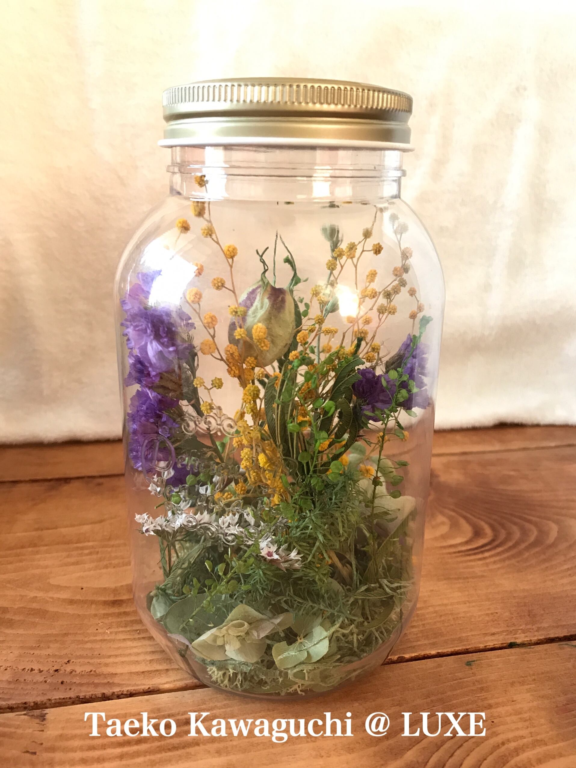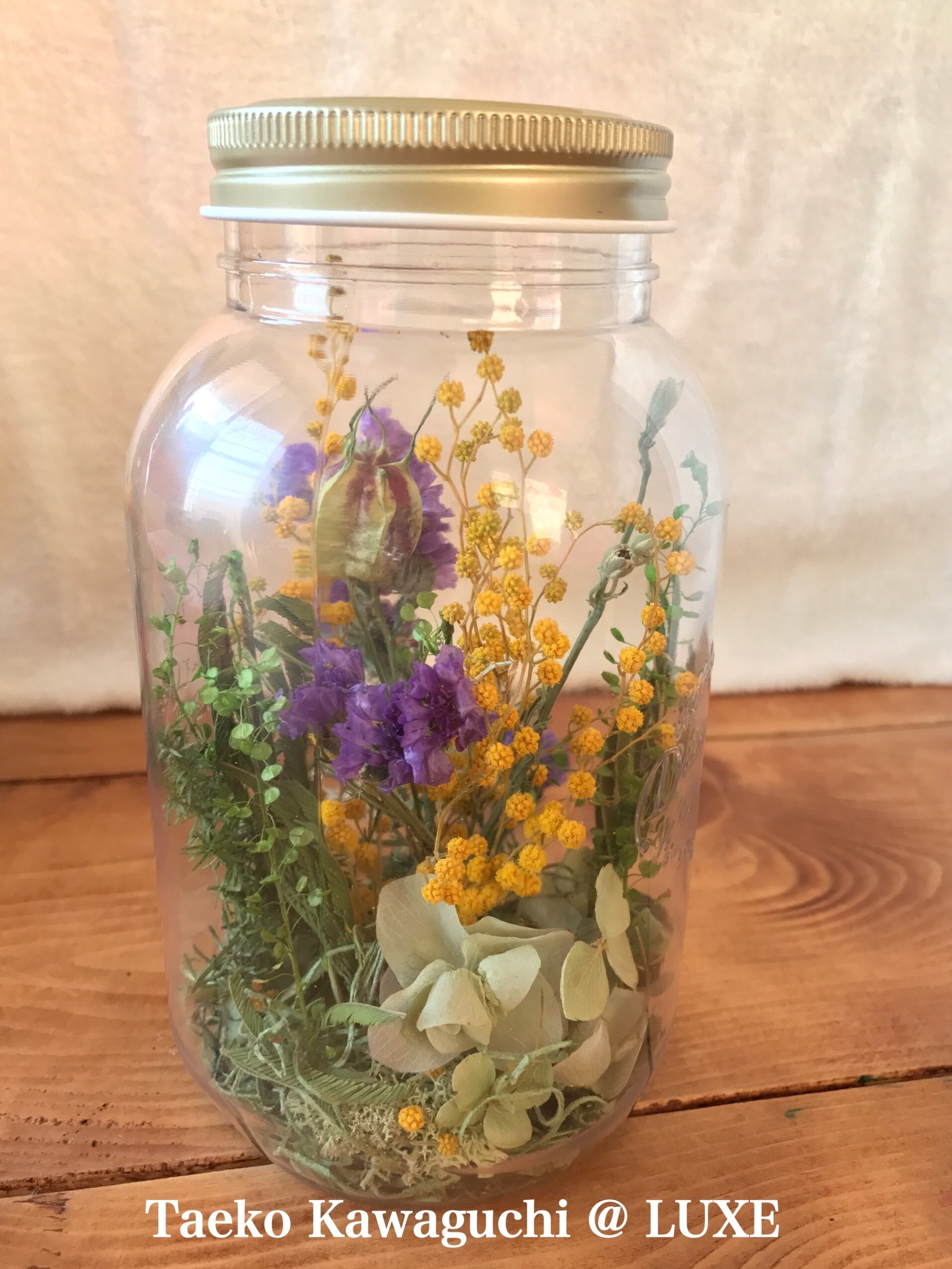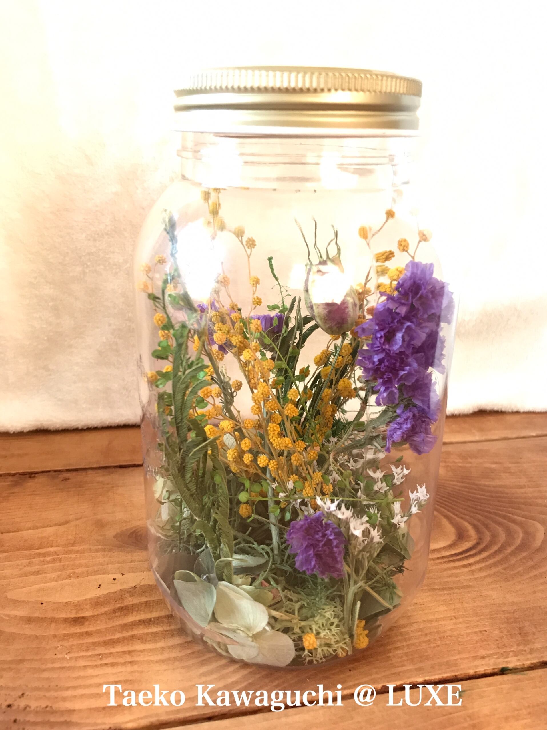 また、ドライフラワーは、太陽光や湿気を嫌いますので、直射日光の当たらない、湿気の少ないところに置いてお楽しみくださいませ。
