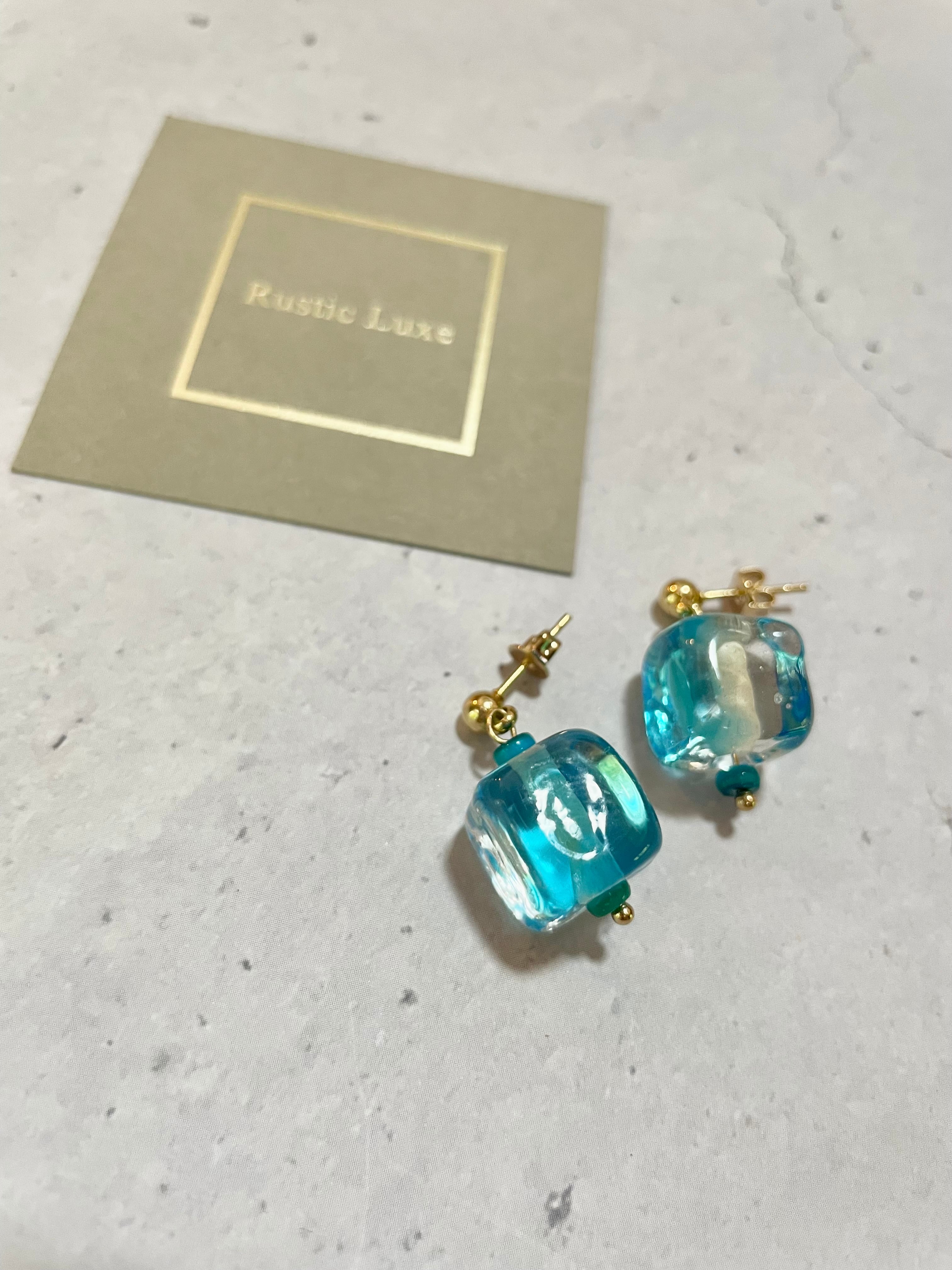 ◾︎ 碧色の透明感あふれるガラスが、耳元でさりげなく輝きを放ち、装飾としての魅力を引き立てます。