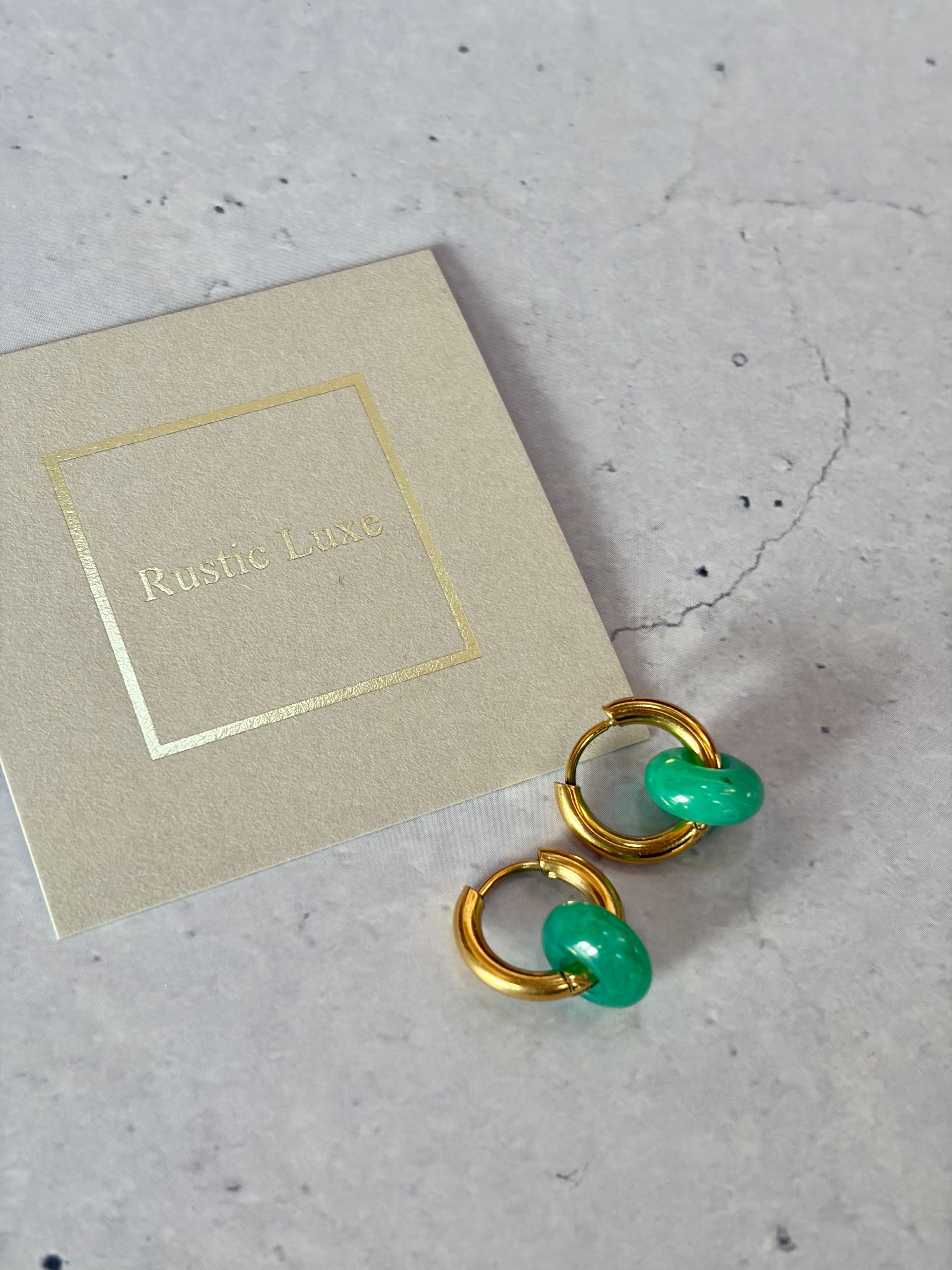 ⚫︎天然石ゴールドリングピアス(グリーン)