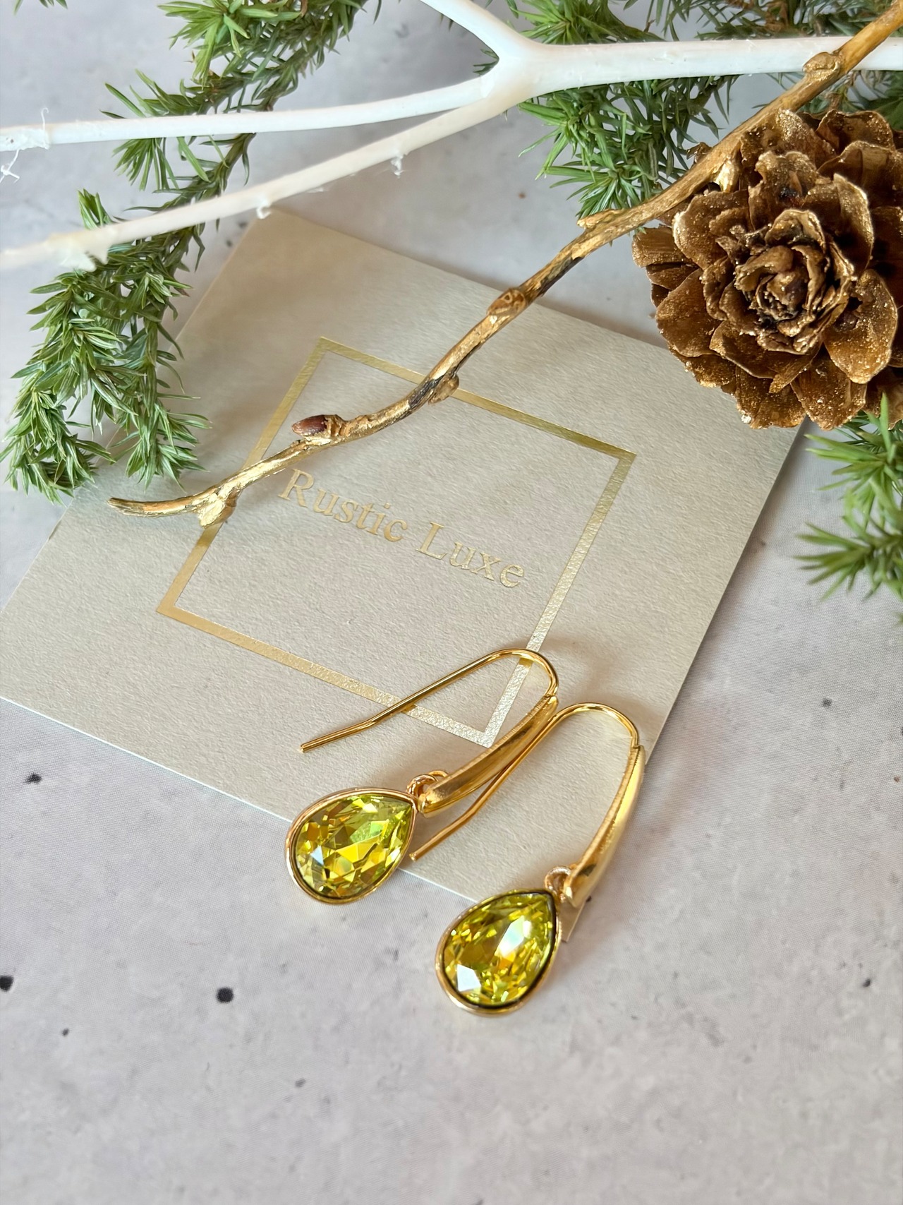 月光若葉(シトラスグリーン)のスワロフスキーが揺れるピアスです。