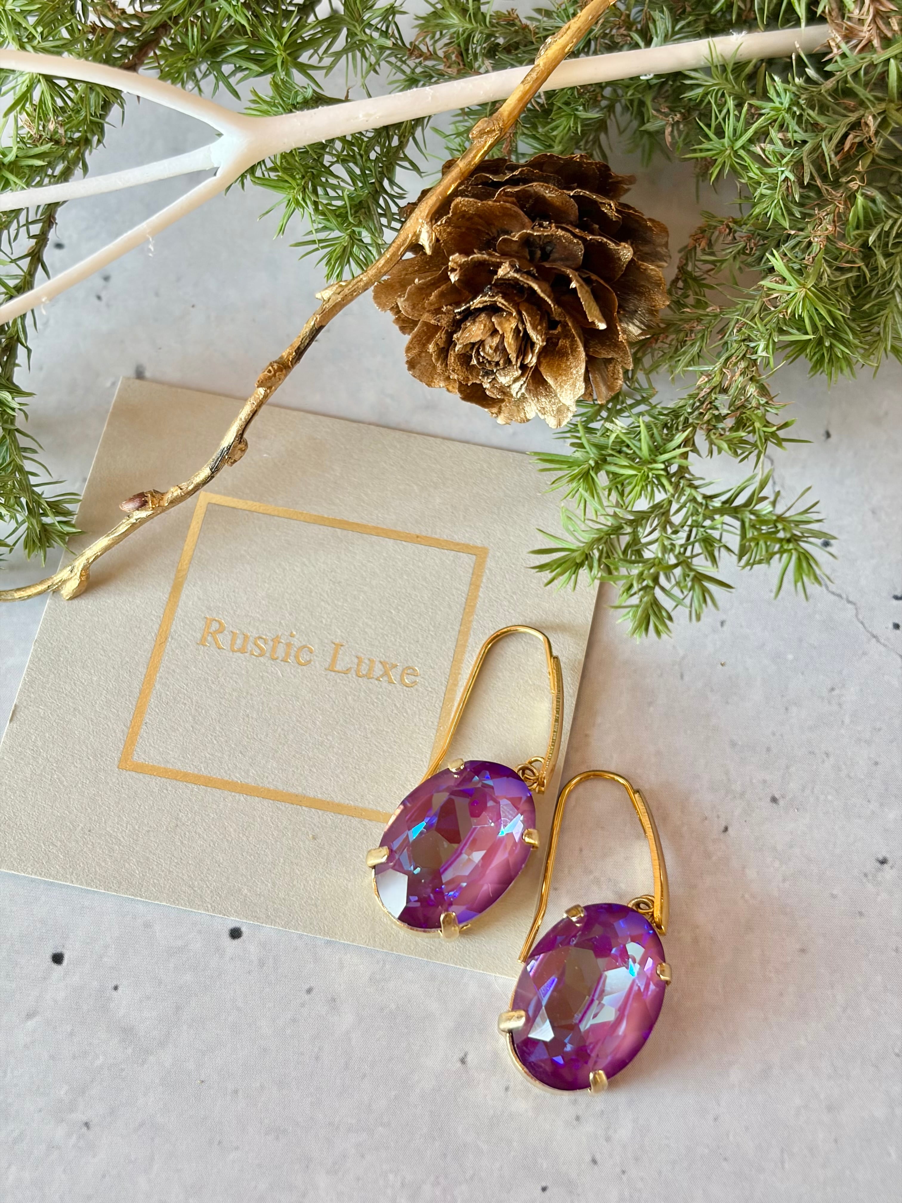 霧虹(オーロラパープルカラー)のスワロフスキーが揺れるピアスです。