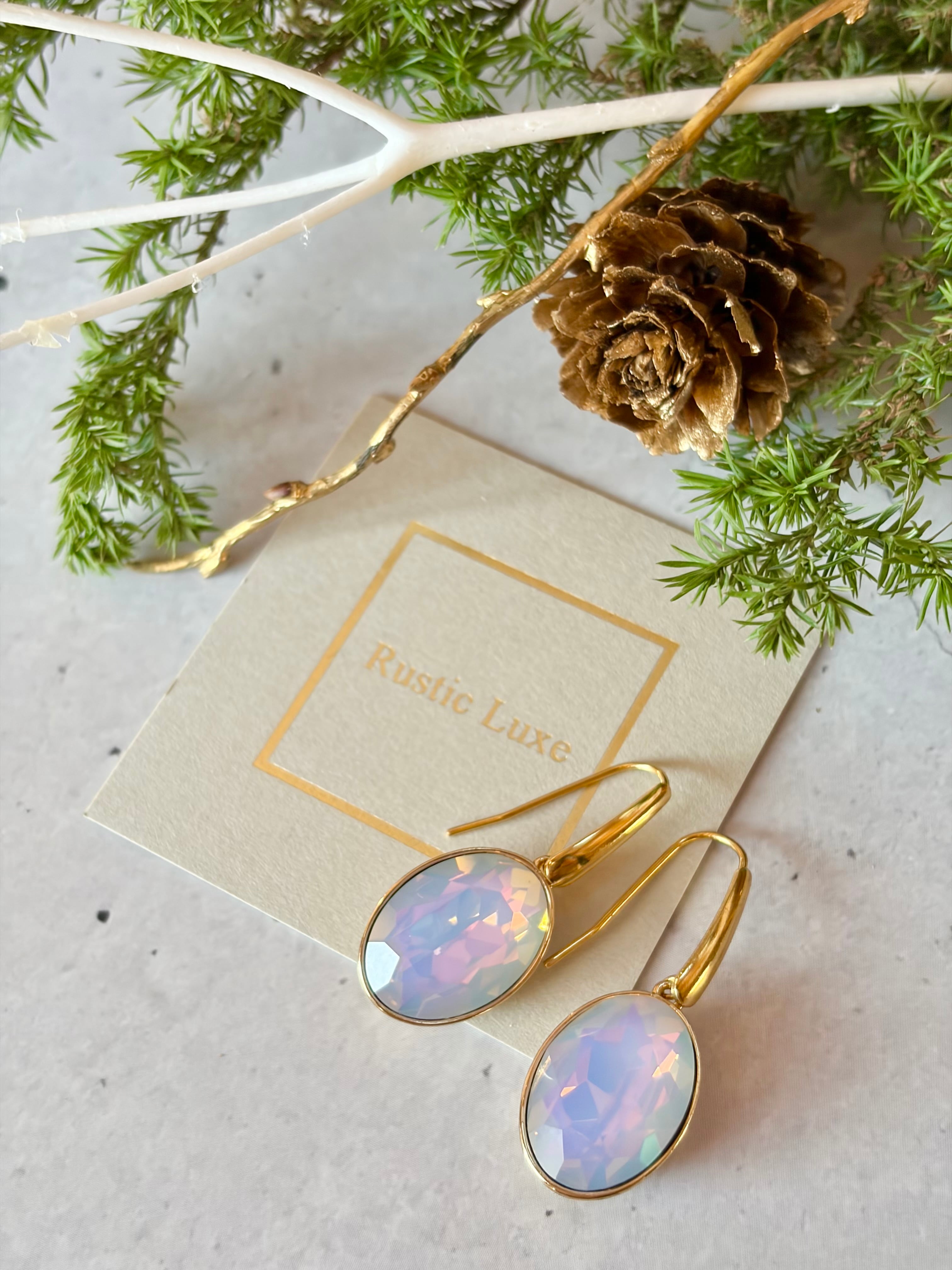 月雫(うっすらピンクみがかったオーロラホワイトカラー)のスワロフスキーが揺れるピアスです。