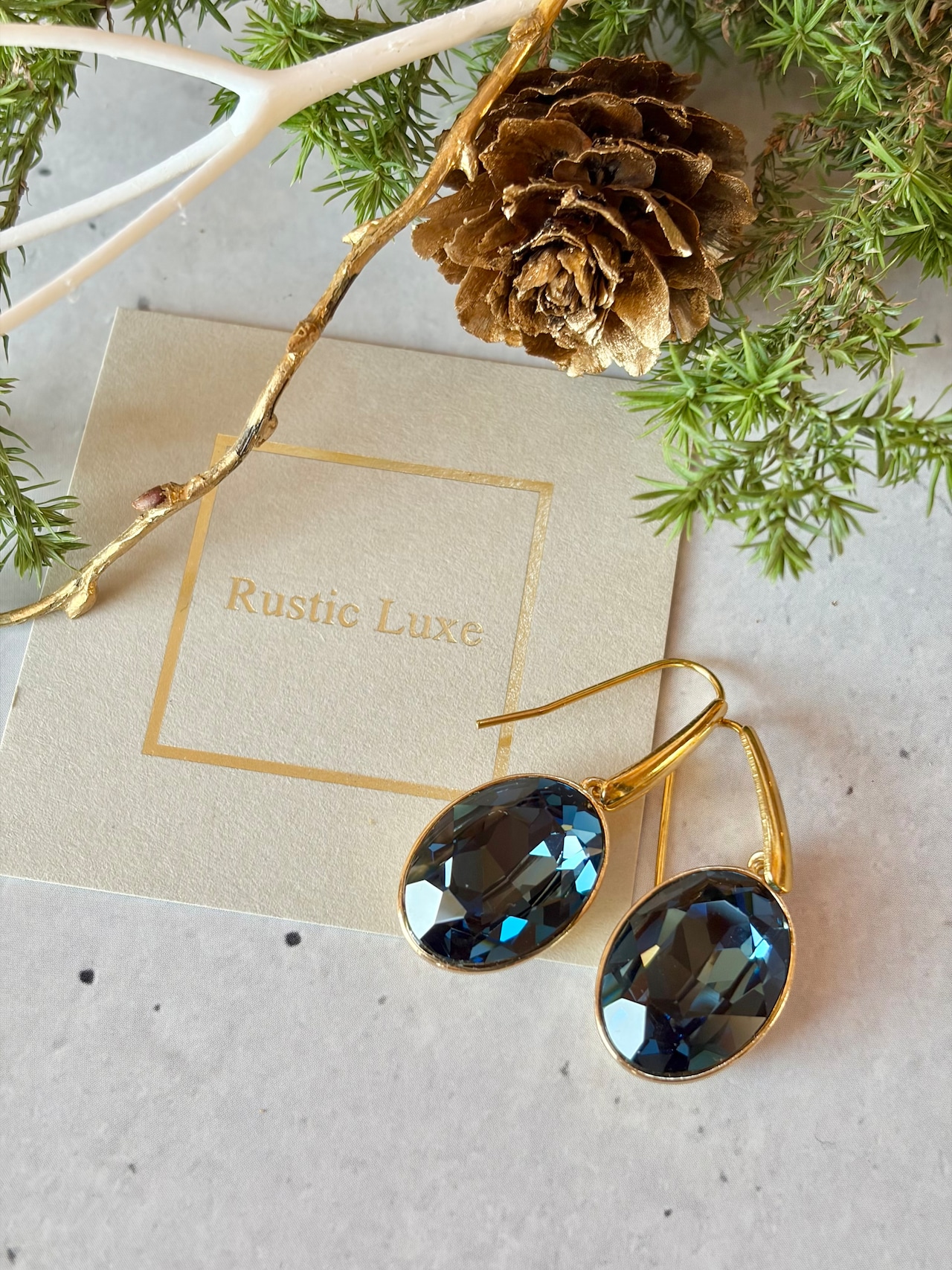 夜空のような澄んだ深いネイビーブルーのスワロフスキーが揺れるピアスです。