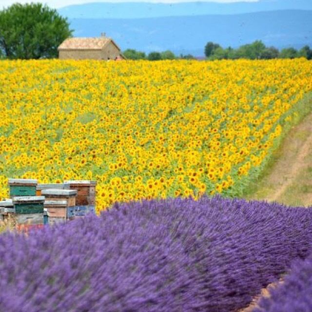 プロヴァンス地方のラベンダーとひまわり畑の配色をイメージして作った作品です。