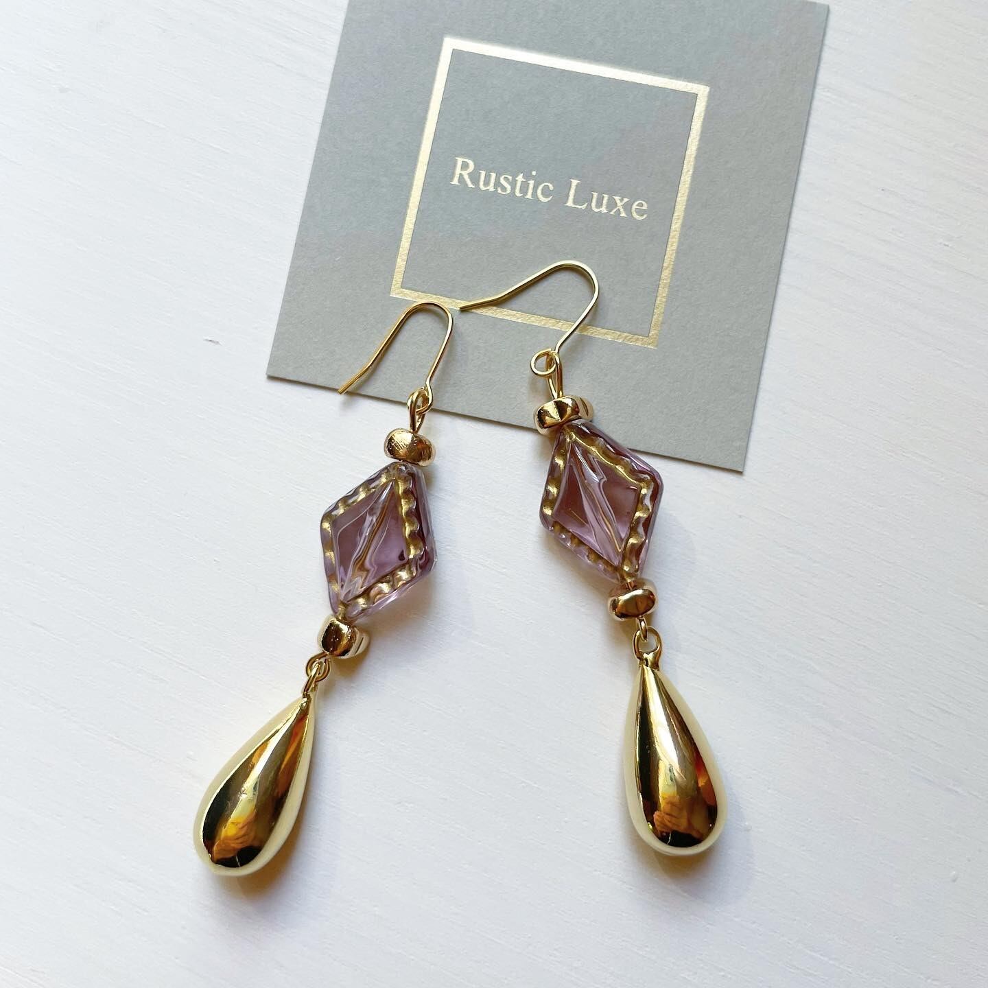 ラベンダーカラーのパーツとドロップ型のゴールドパーツを合わせました。