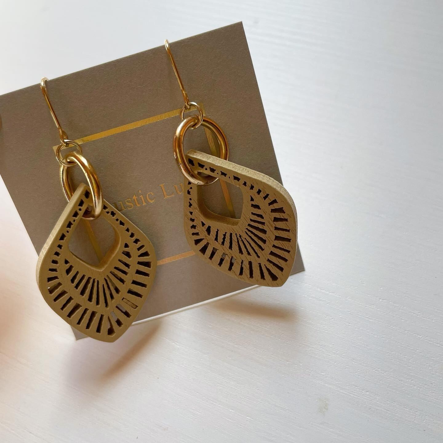 ウッドパーツを使用した、軽い着け心地の揺れるピアスです。