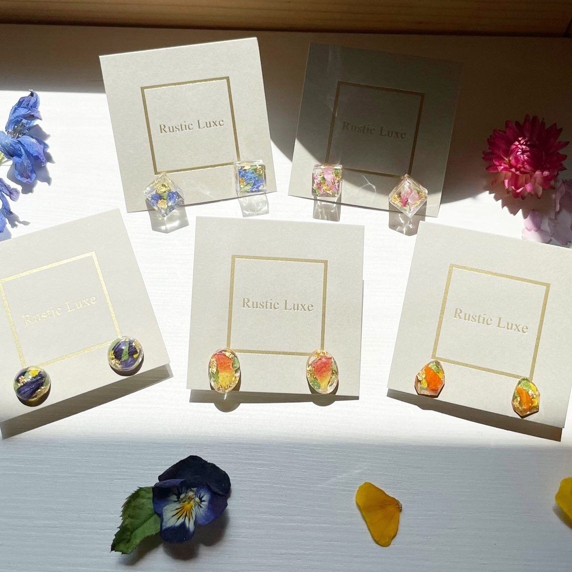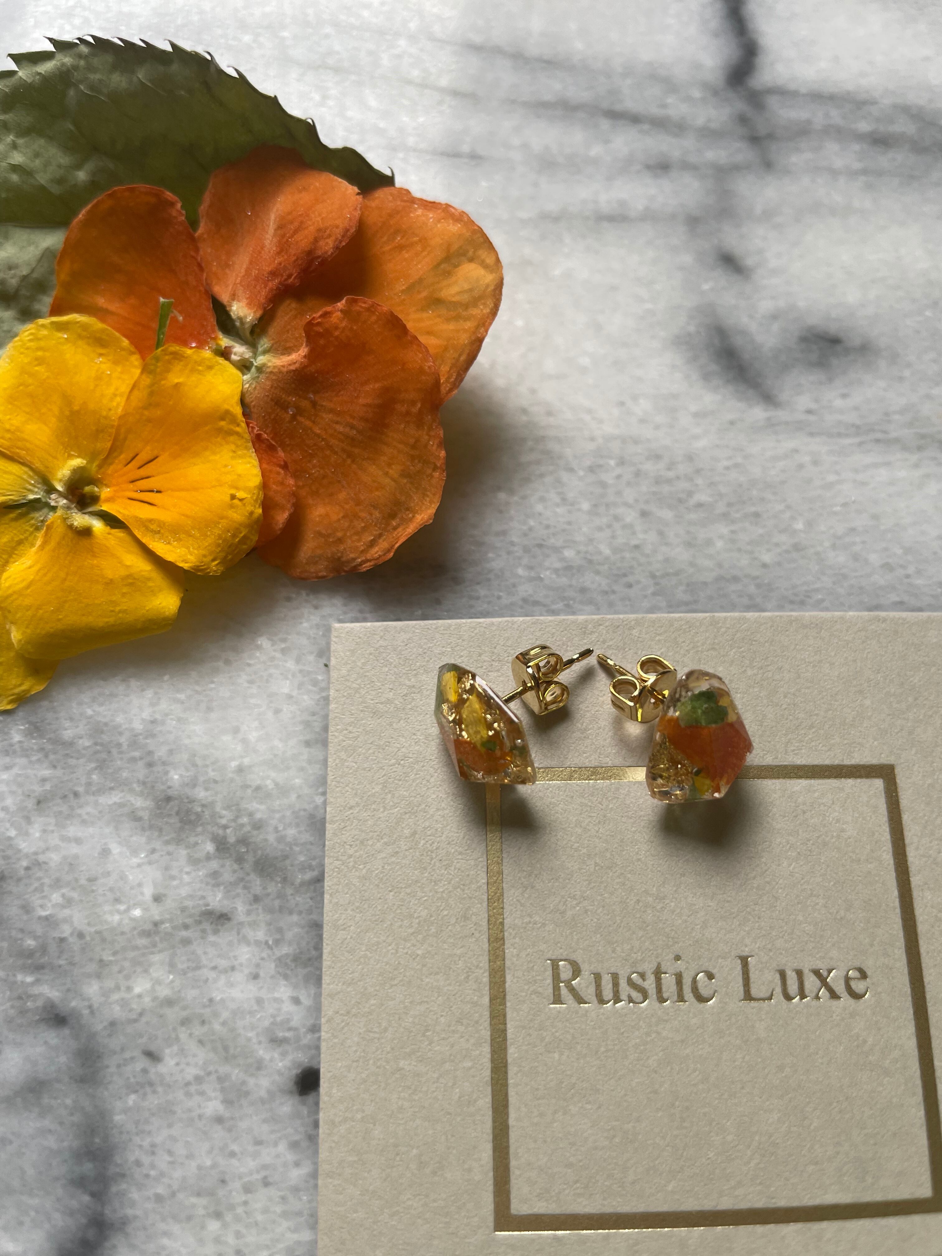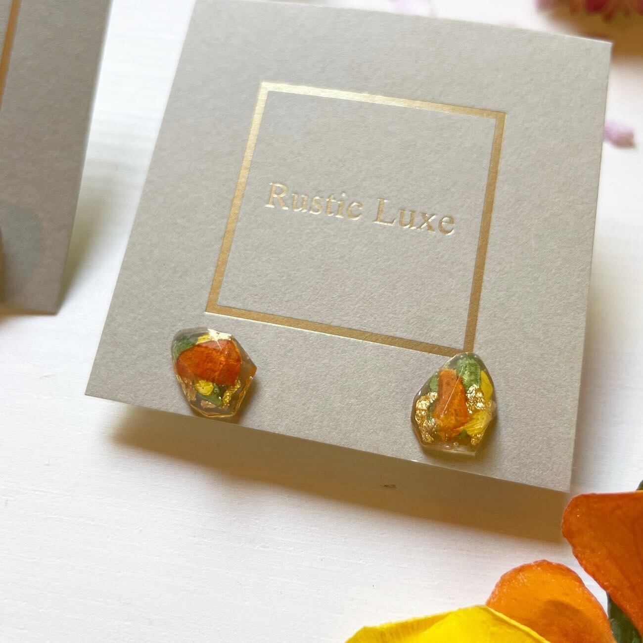 オレンジ色のビオラのドライフラワーをレジンで埋め込みました♡