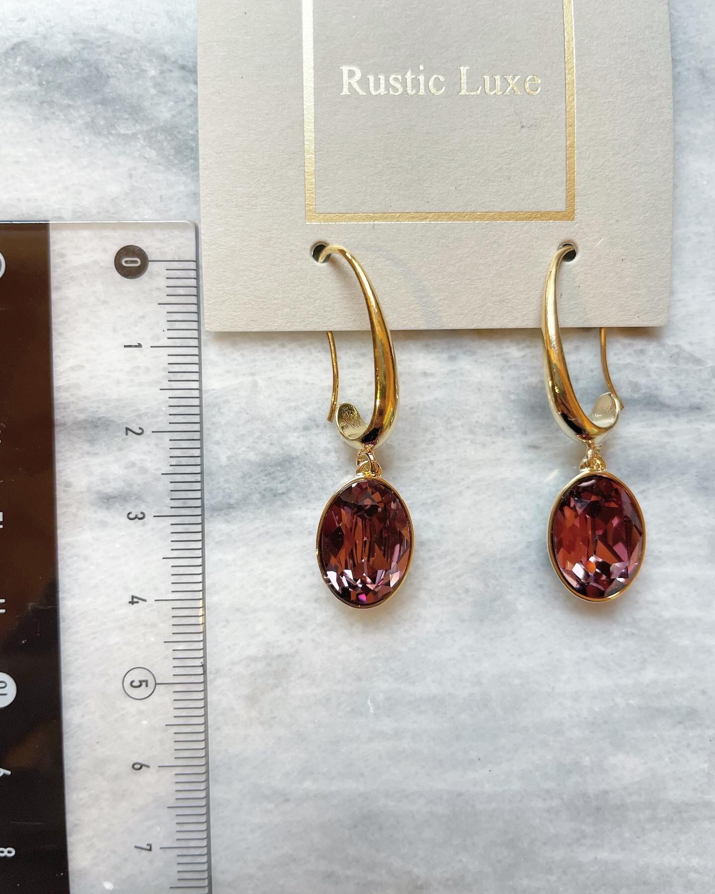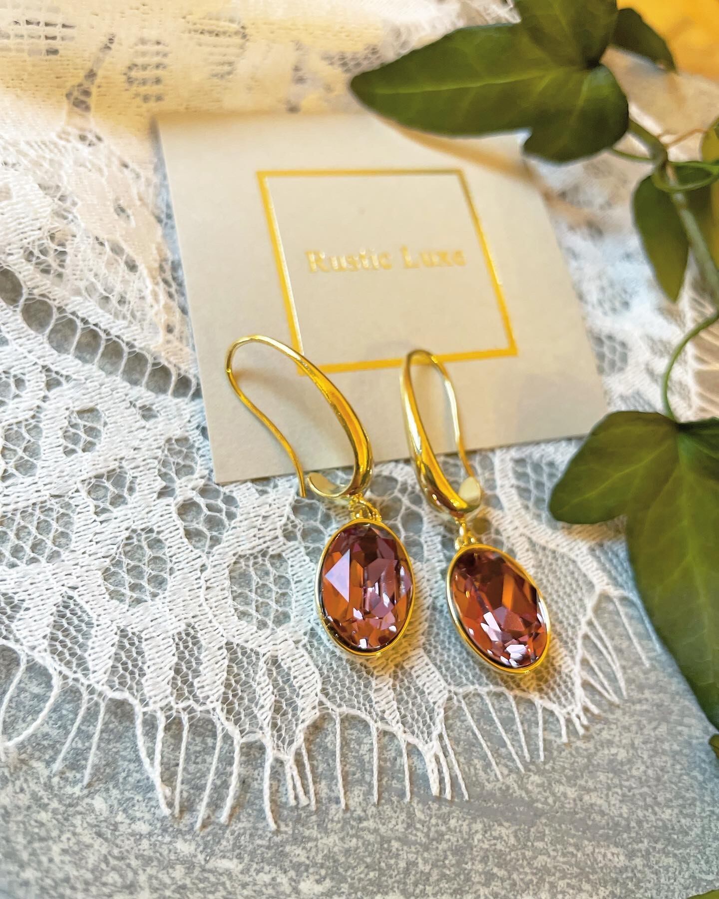秋冬らしい落ち着いたアンティークピンクのスワロフスキーピアスです。
