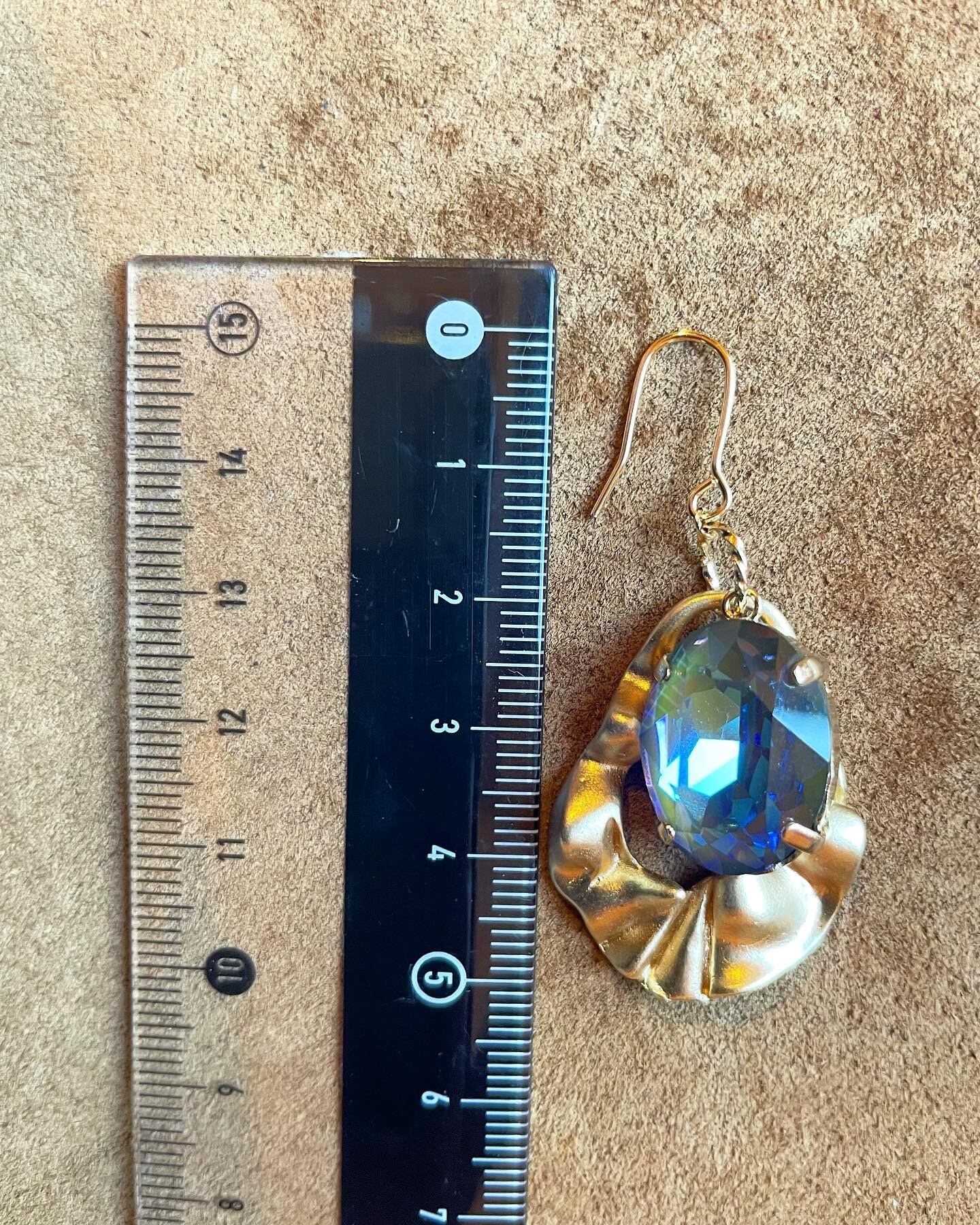 くすみブルーの大ぶりなスワロフスキーピアスです。