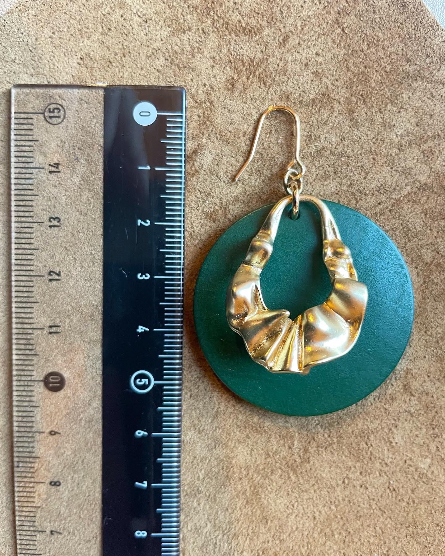 大ぶりなグリーンのウッドとゴールドを合わせたインパクトのあるピアスです。