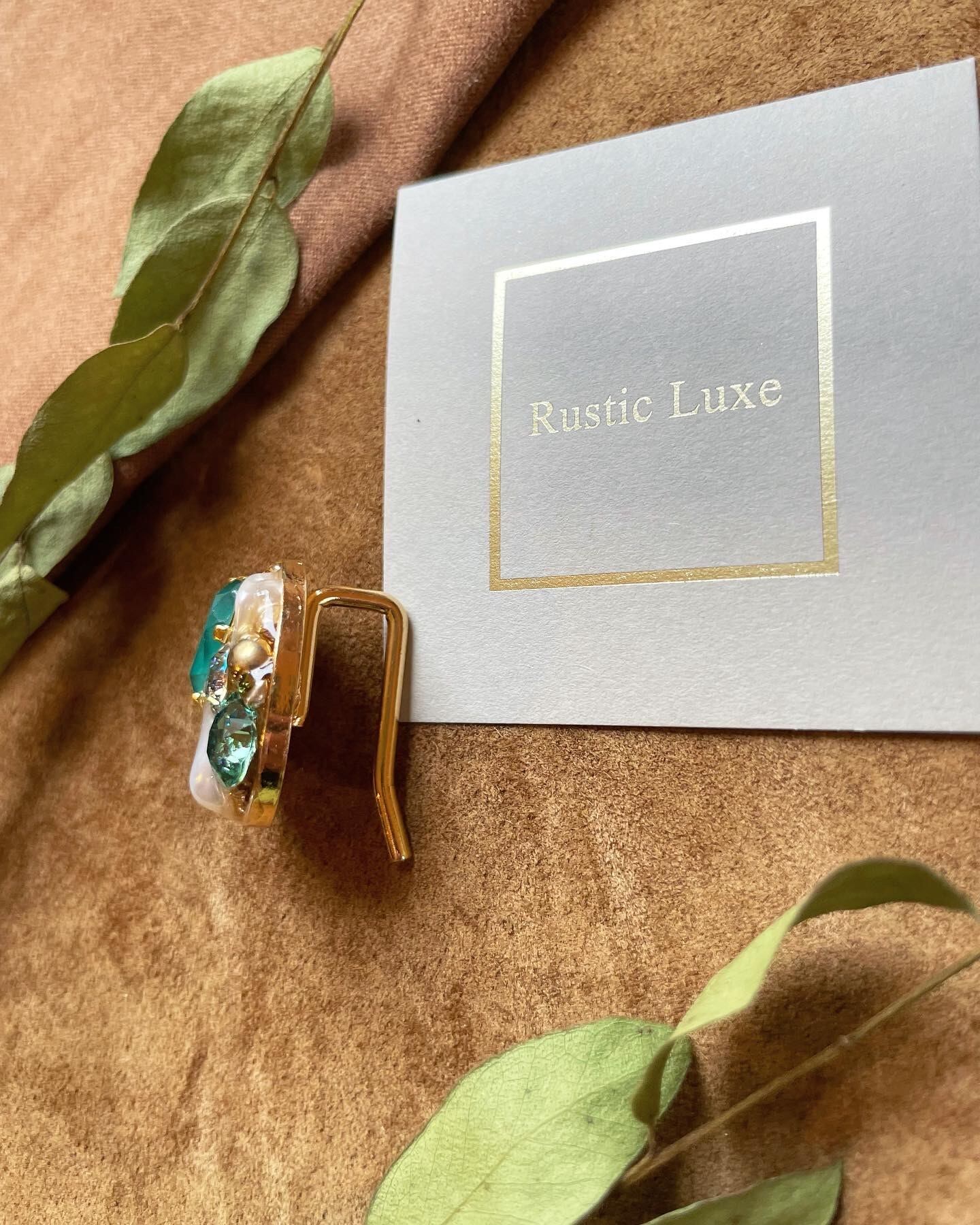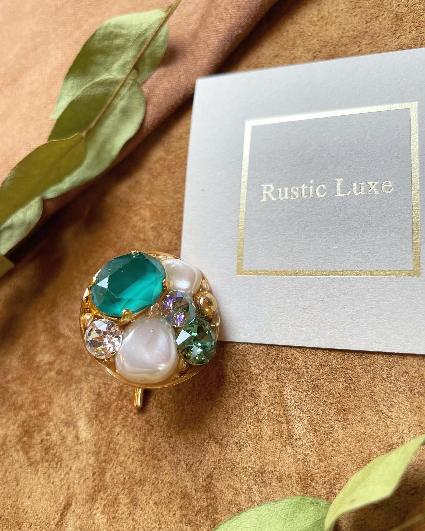 スワロフスキーやバロックパールなどをふんだんに使ったポニーフックです。