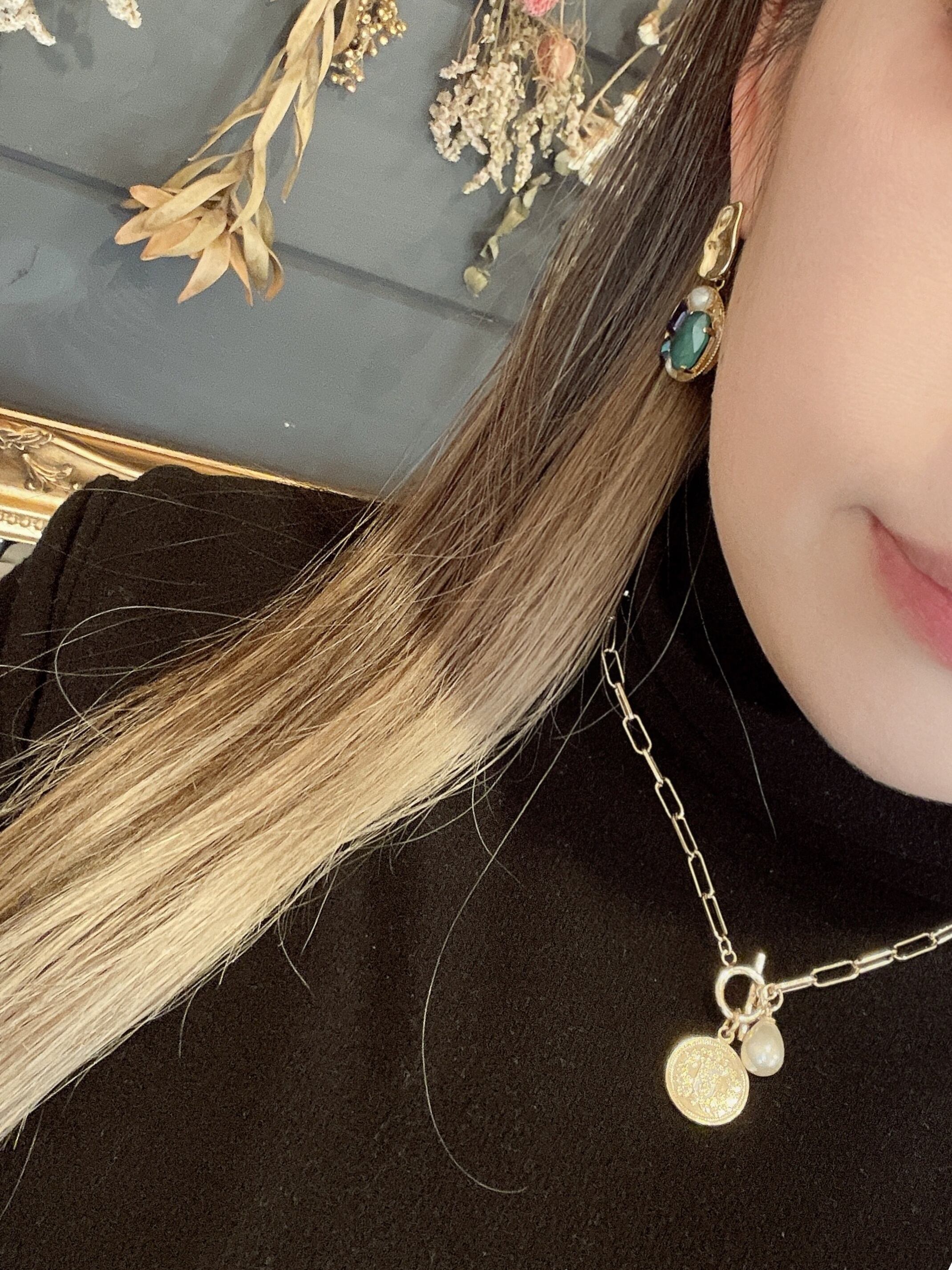 マンテルチェーンネックレス(コイン&パール)