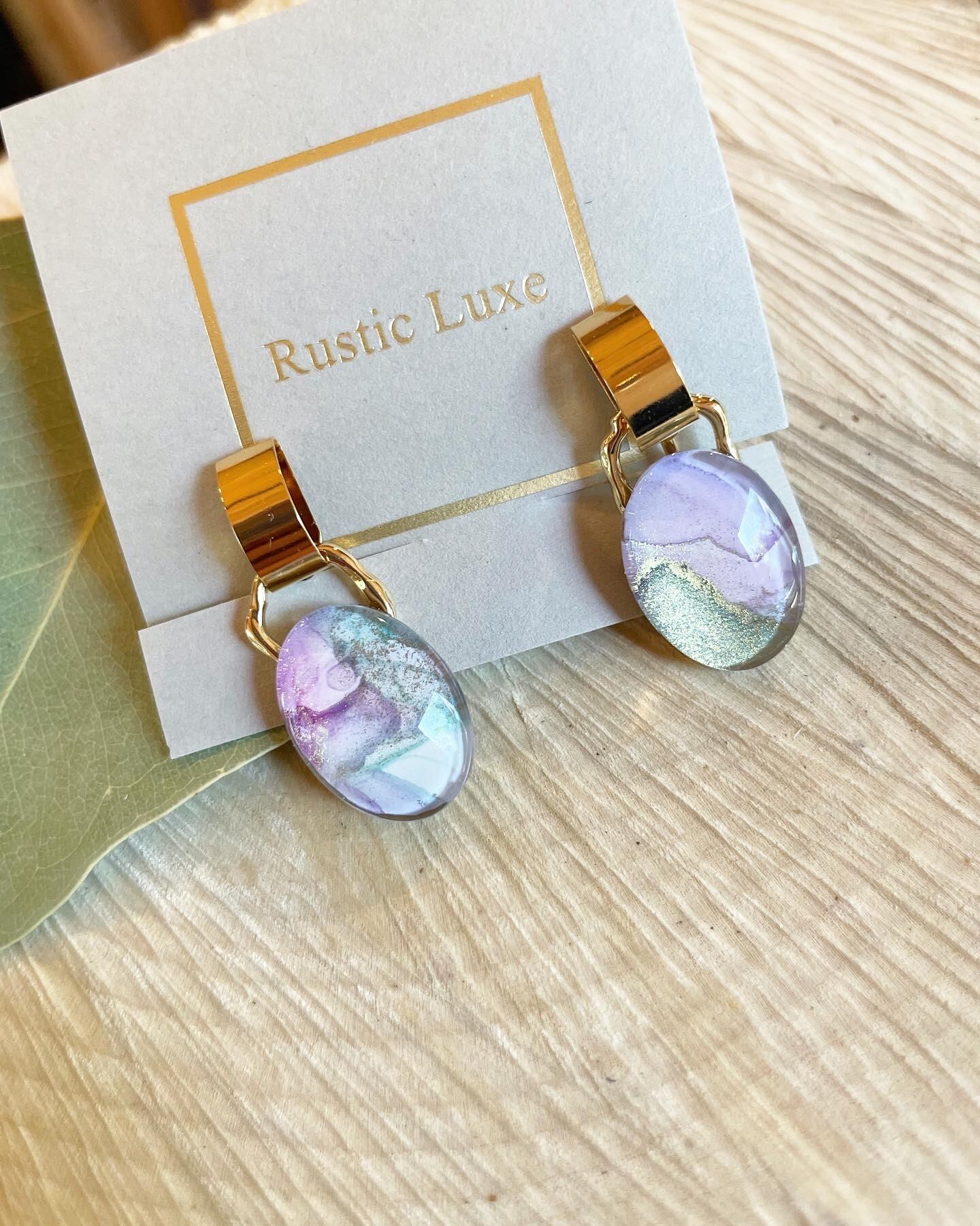 アルコールインクアートをガラスの中に埋め込んだ世界に一つだけの身につけるアートイヤリングです。(こちらはピアスではありませんのでご注意くださいませ)