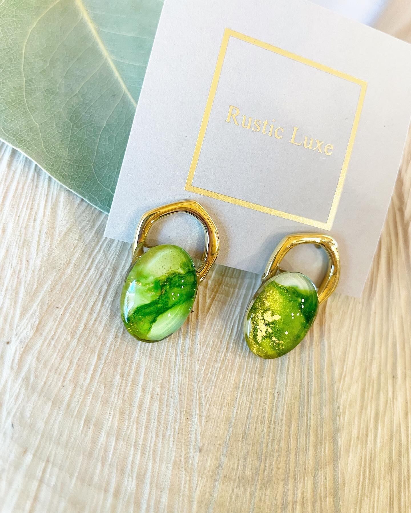 アルコールインクアートをガラスの中に埋め込んだ世界に一つだけの身につけるアートピアスです。