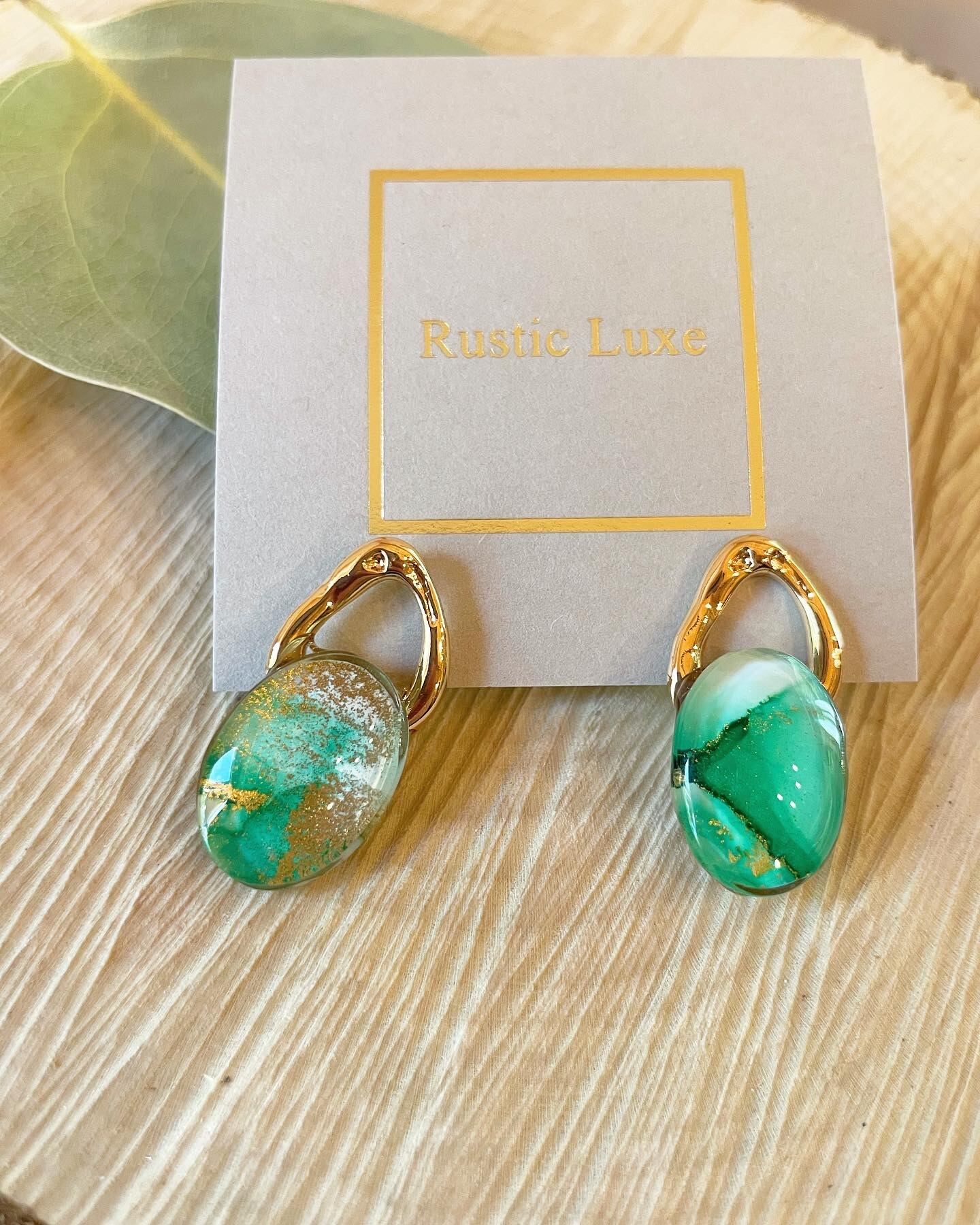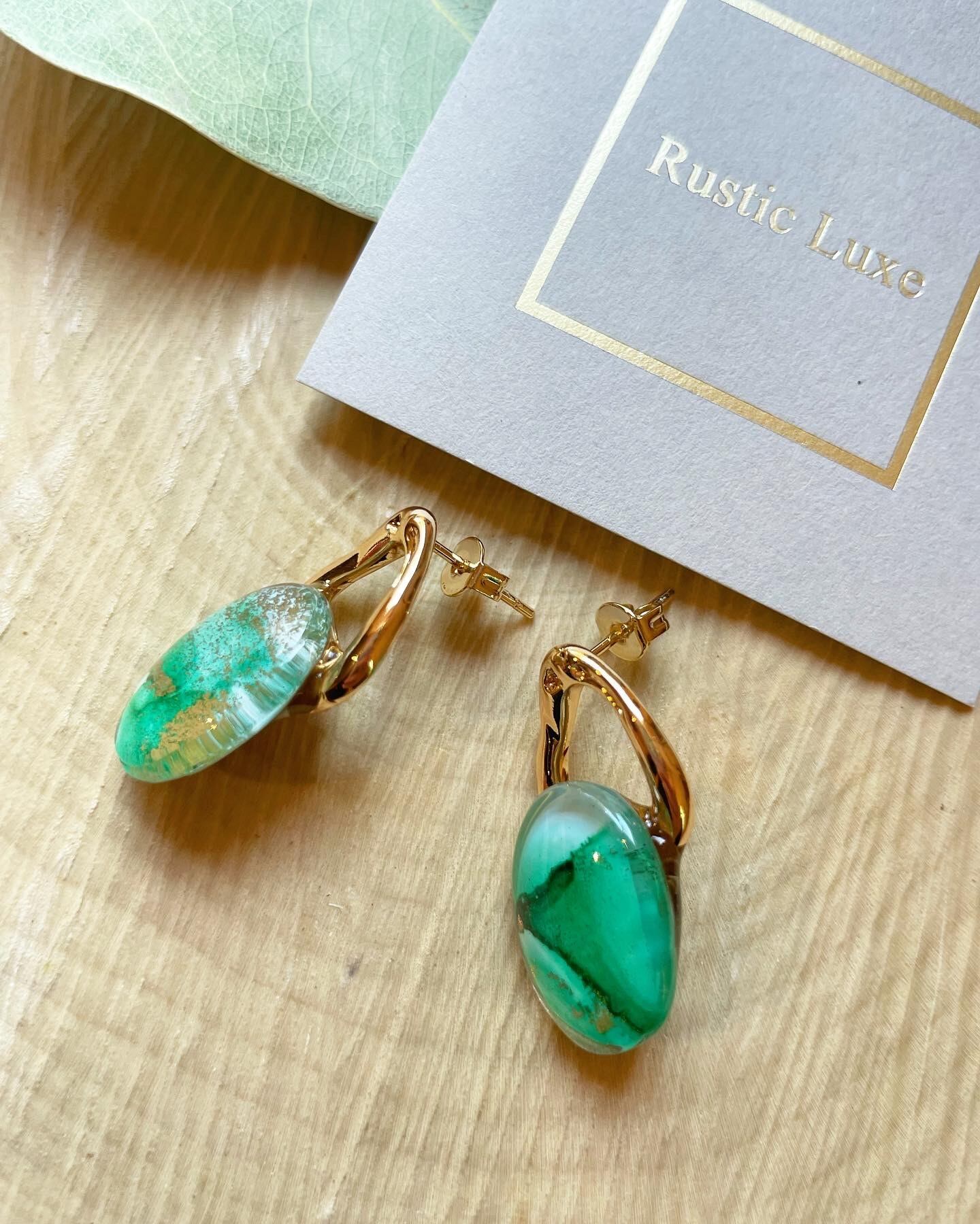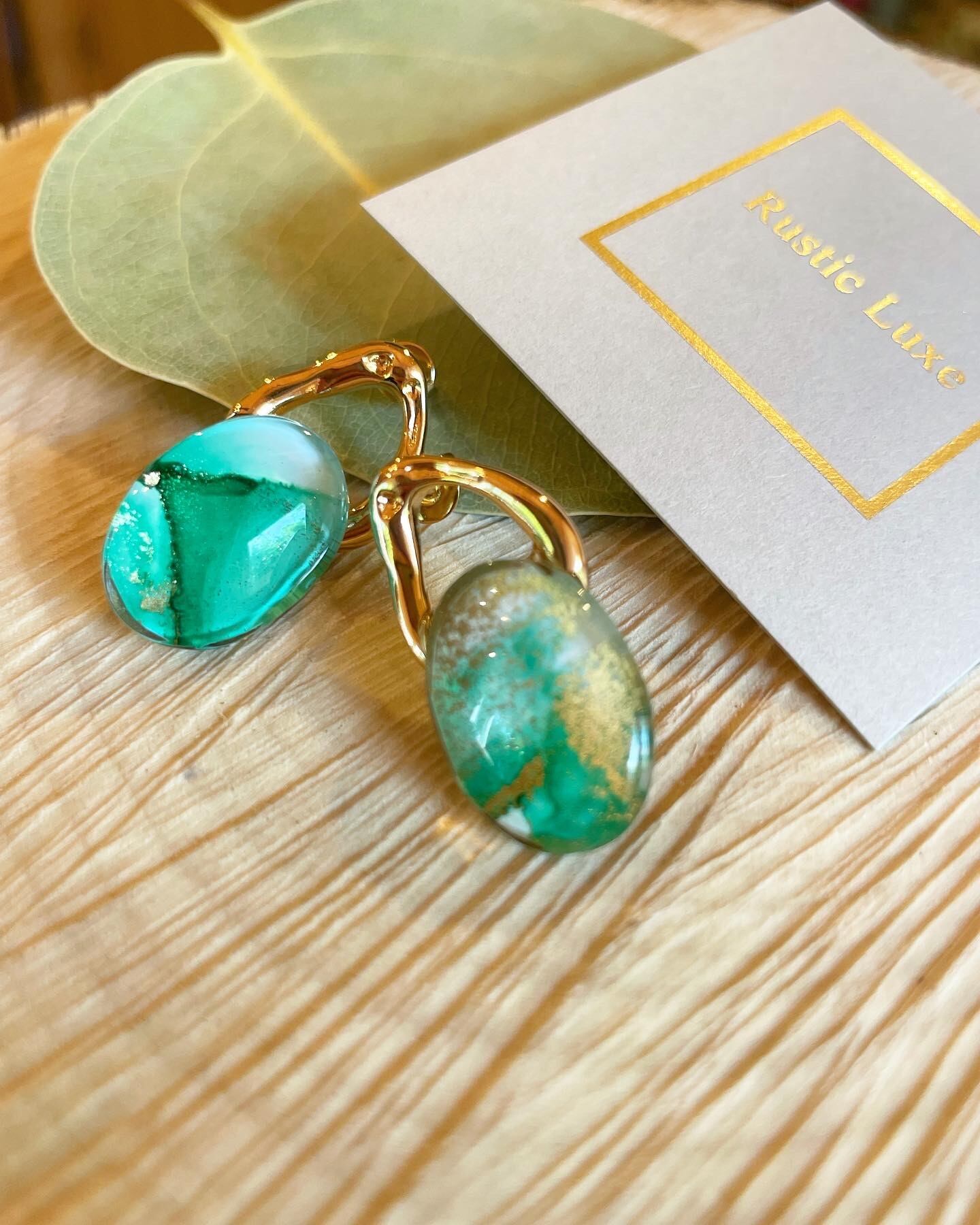 アルコールインクアートをガラスの中に埋め込んだ世界に一つだけの身につけるアートピアスです。
