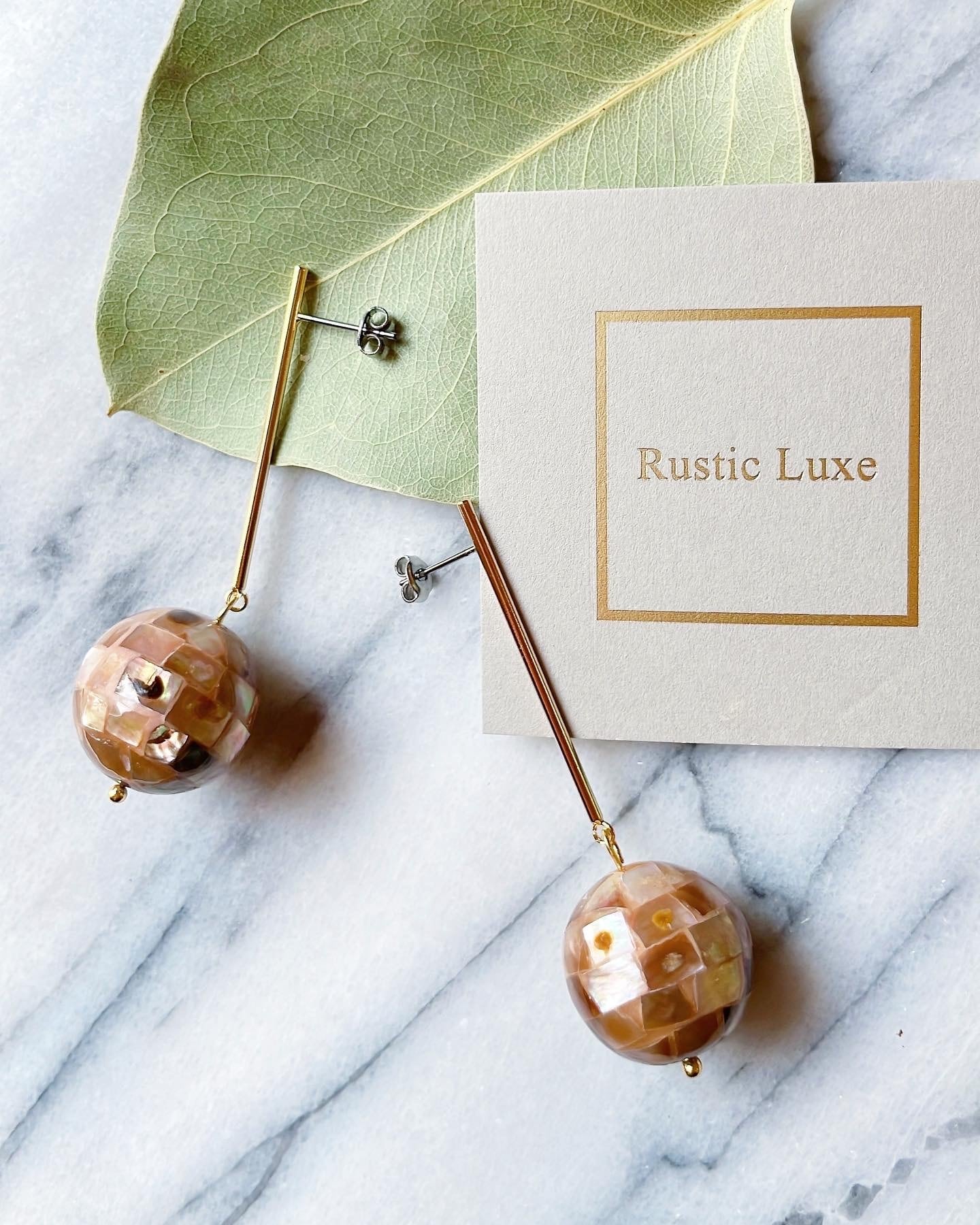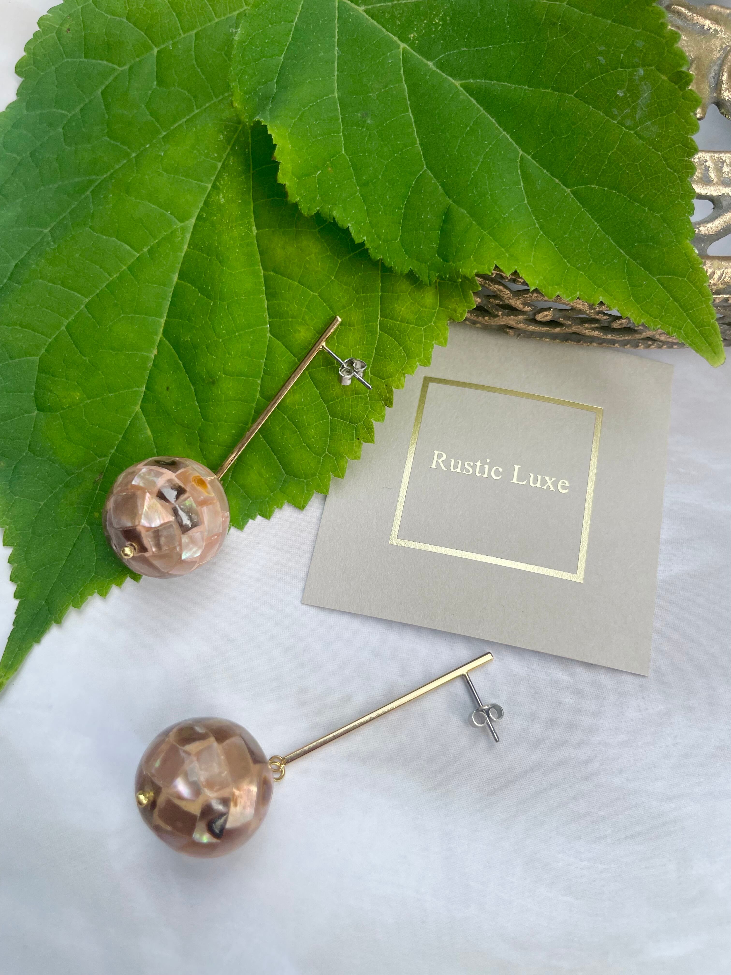 大ぶりなシェルボールとロングバーで、インパクトとスタイリッシュさを兼ね備えたピアスです!