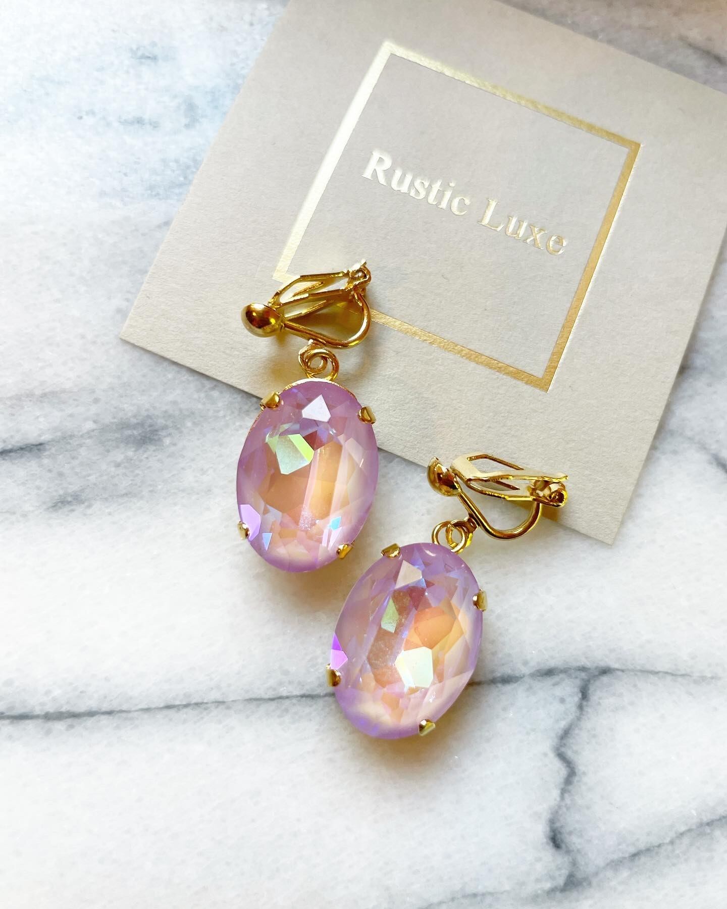大ぶりとはいえライラックの優しい色味なので主張しすぎず使いやすいイヤリングです。