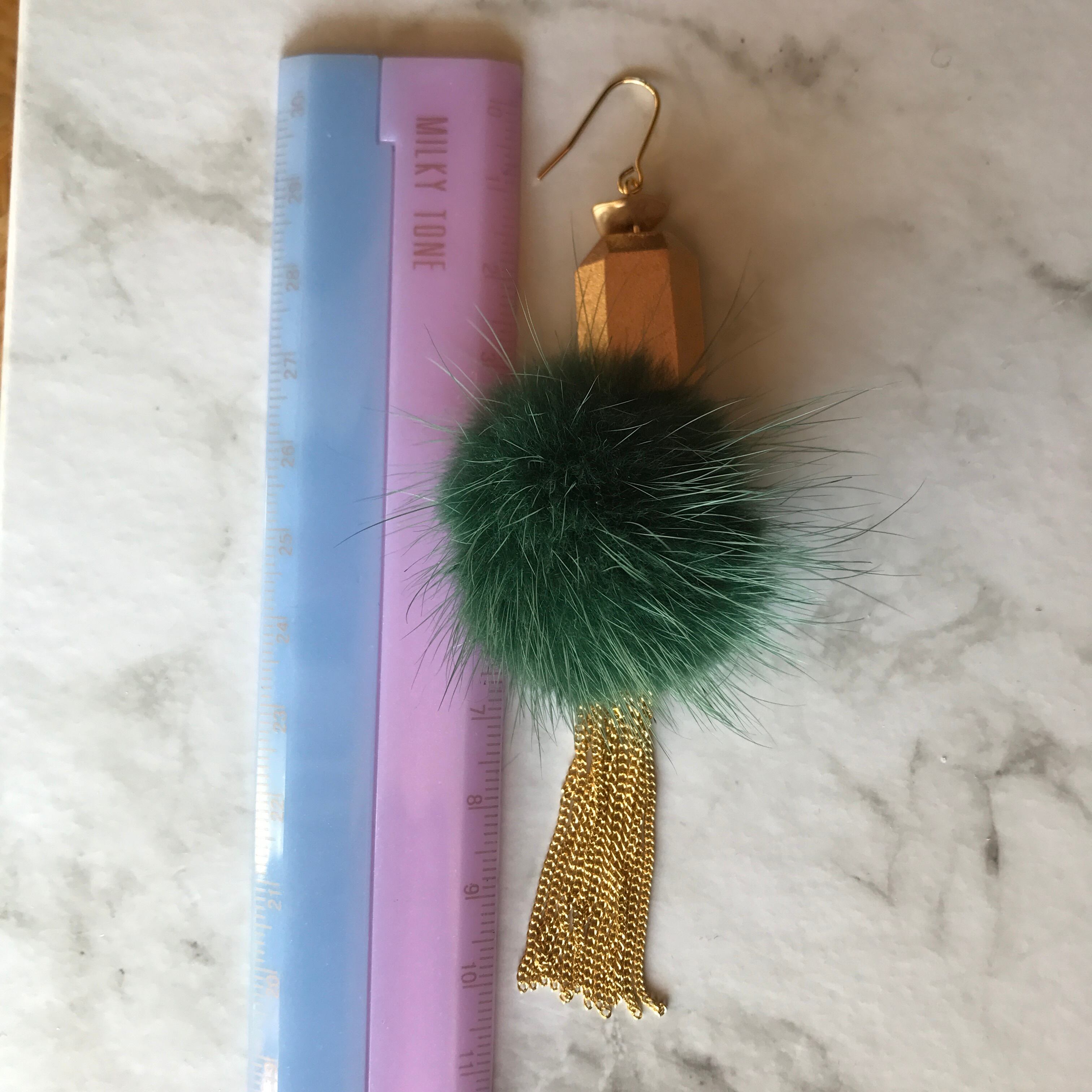 グリーンのファーとゴールドタッセルで大人カッコいい雰囲気です。