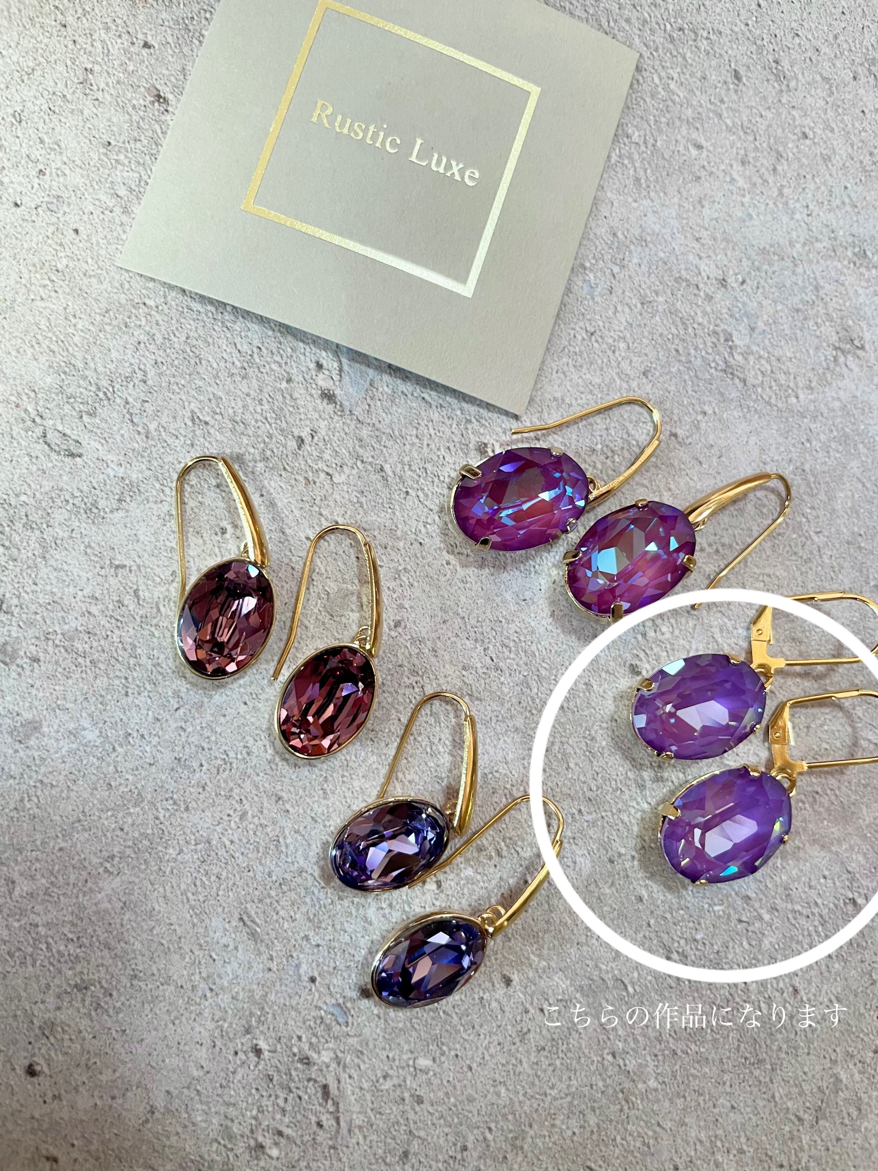 パープルの大ぶりスワロフスキーが揺れるイヤリングです。