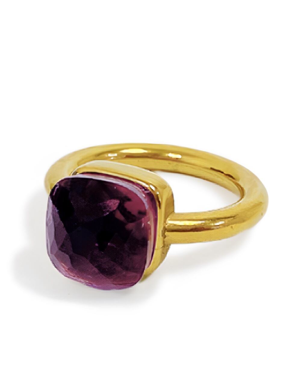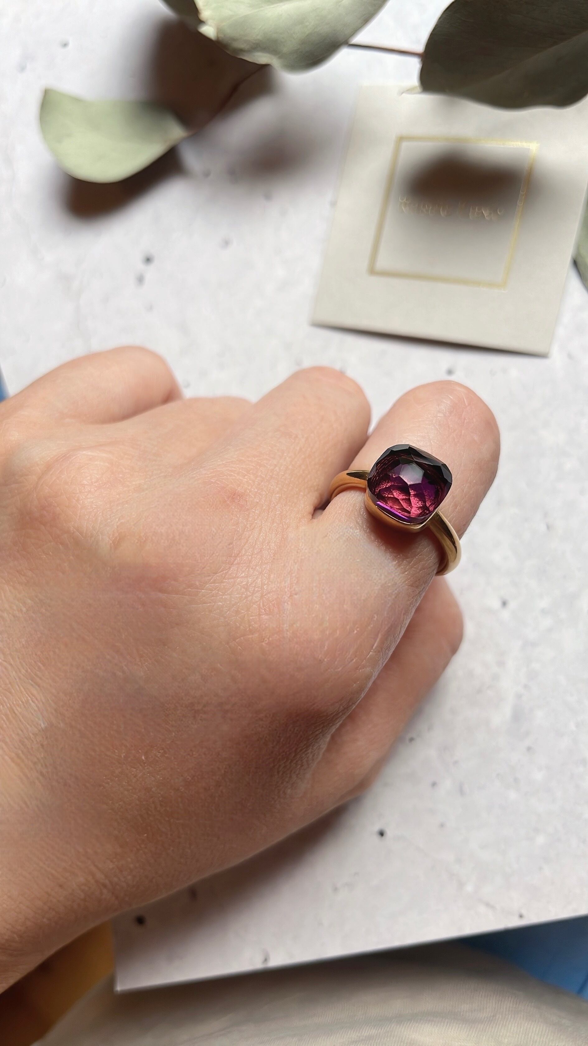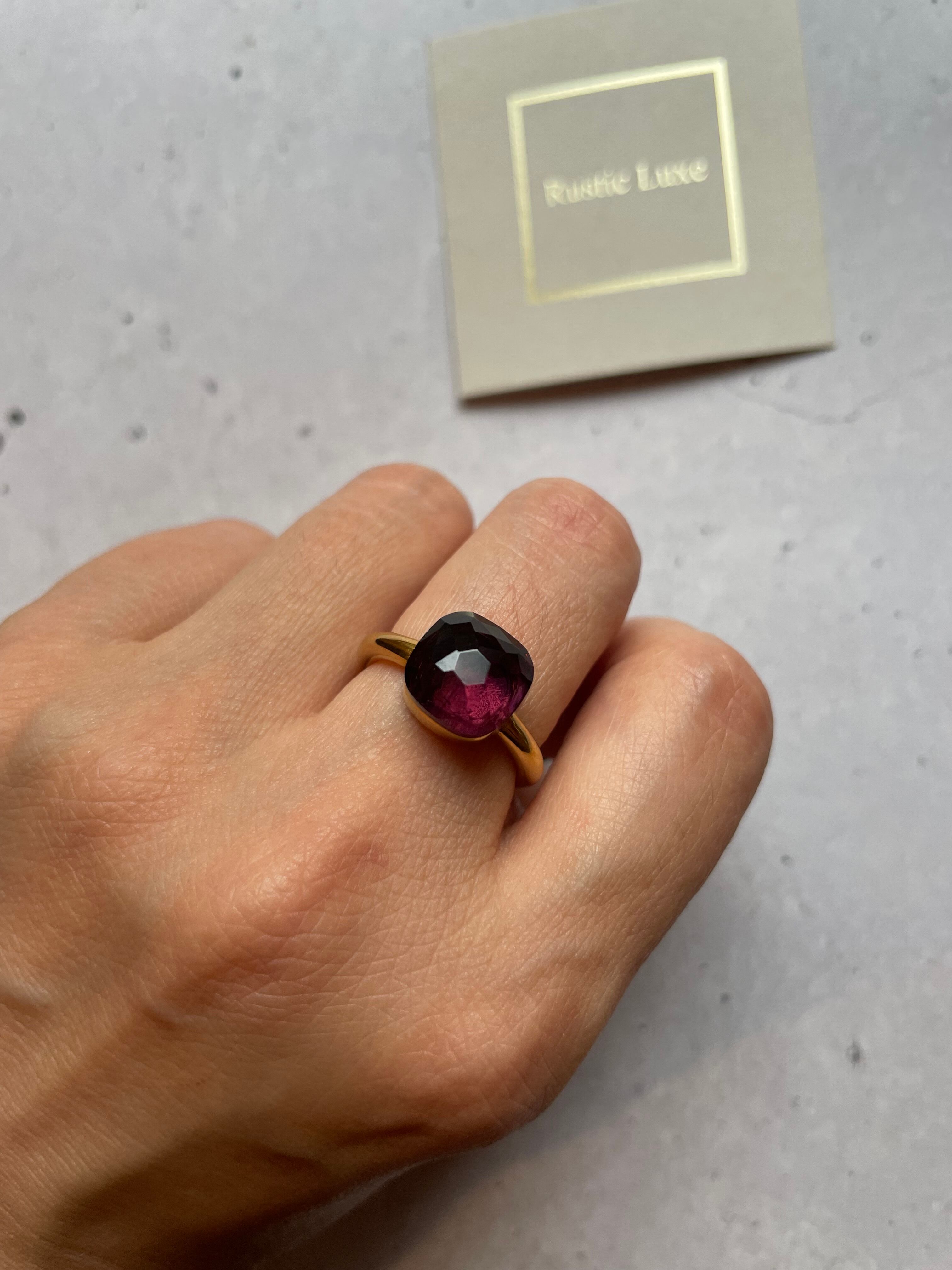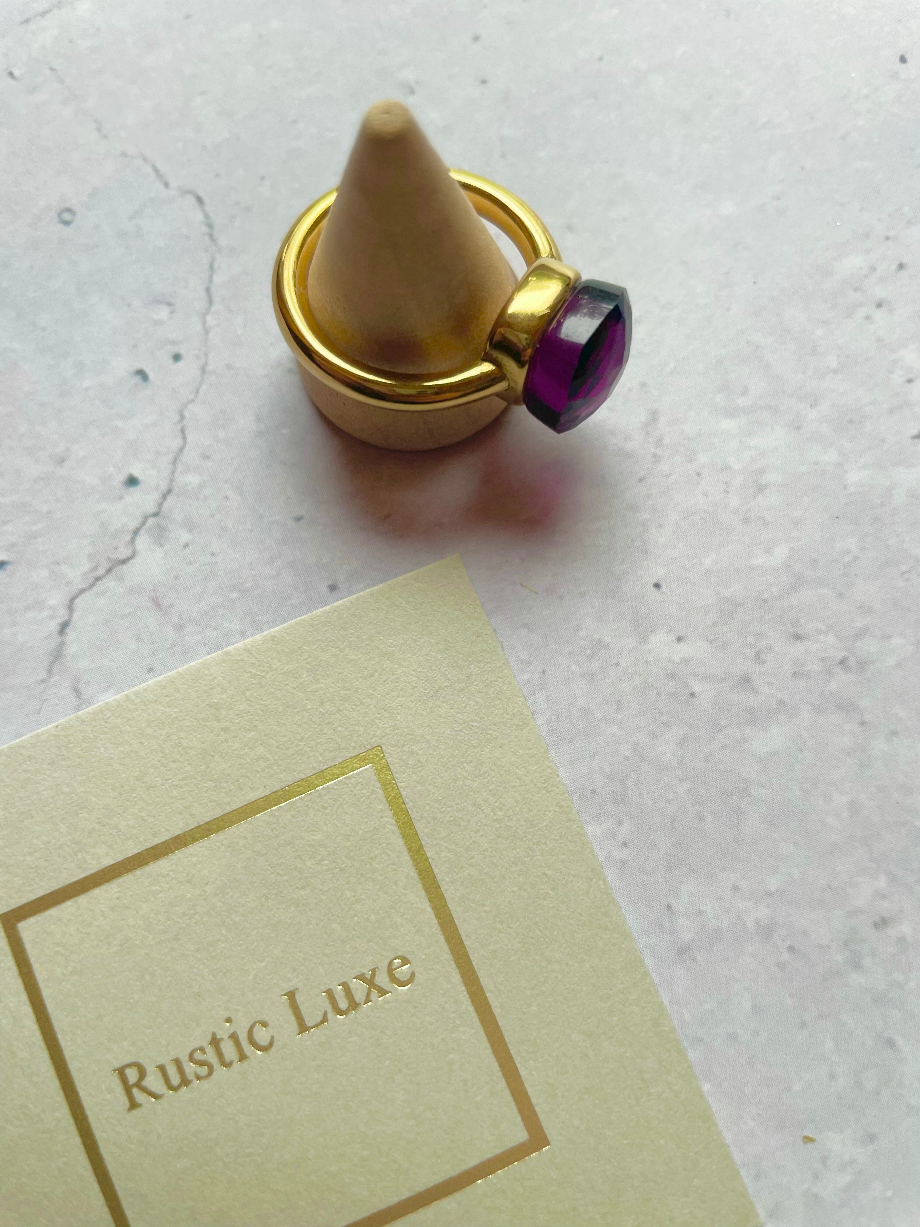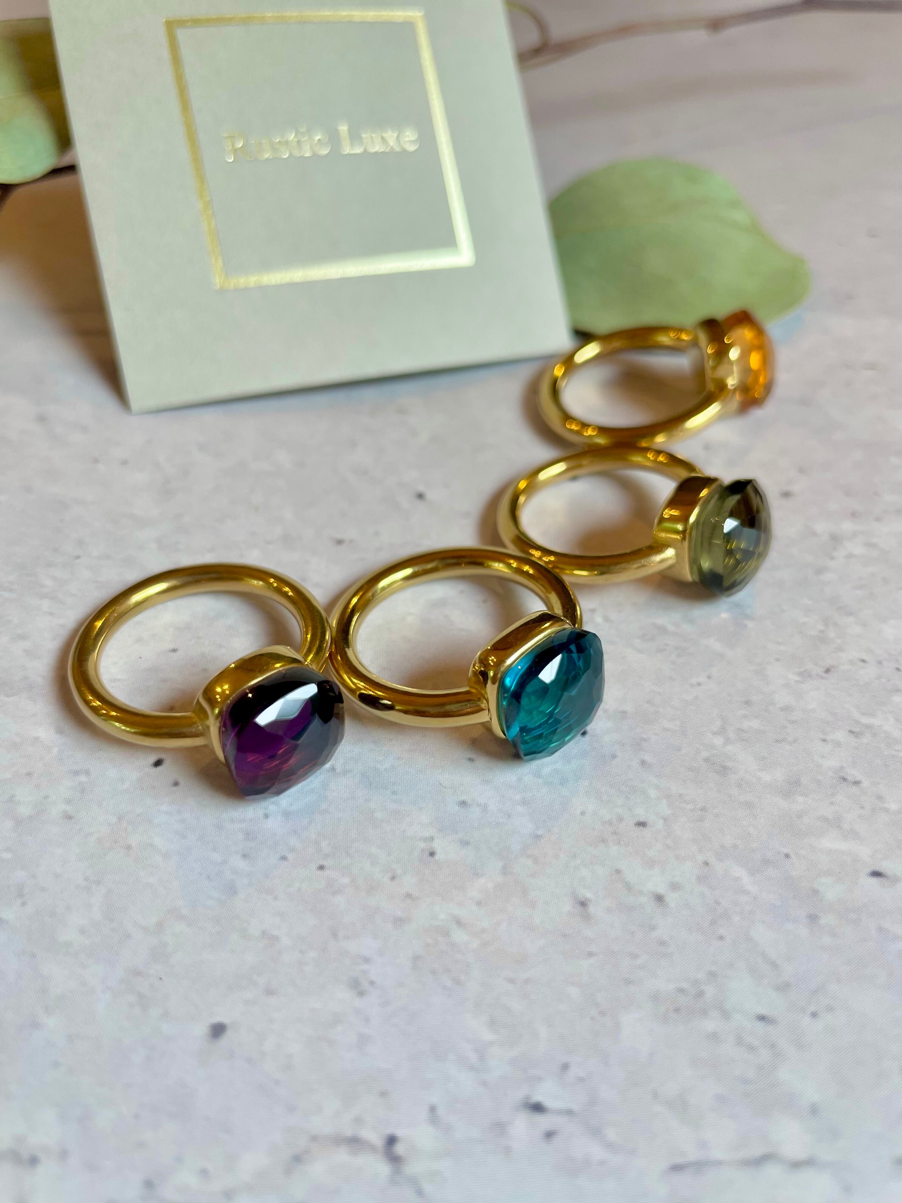 大粒ビジューがアクセントのカラーストーンリング。存在感のある輝きで、ふっくらとした立体的なシルエットが目を引くデザインです。
