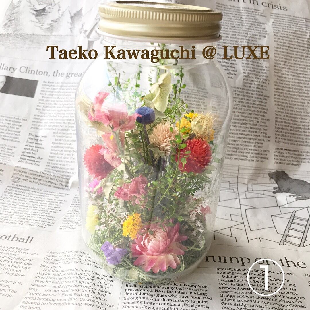 また、ドライフラワーは、太陽光や湿気を嫌いますので、直射日光の当たらない、湿気の少ないところに置いてお楽しみくださいませ。